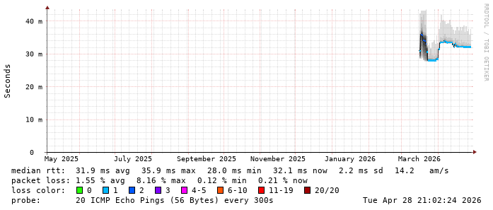 Last 30 Hours from smokeping-bfe2-teuto-net