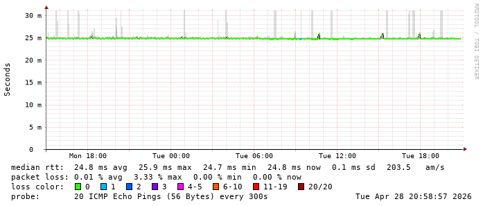 Last 30 Hours from smokeping-bfe2-teuto-net