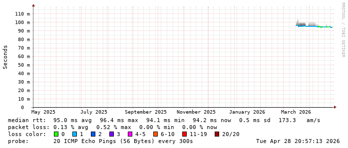 Last 3 Hours from smokeping-bfe2-teuto-net